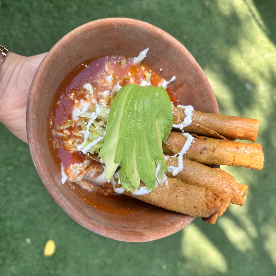 4 piezas delicadas y crujientes, rellenas de guiso a elegir entre quesillo con espinaca, epazote o champiñones. Acompañadas de crema, queso fresco y una selección de salsas caseras para realzar cada bocado.
