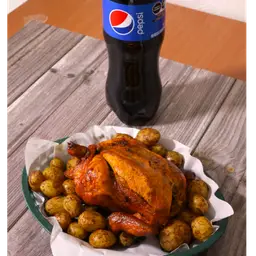 2 piezas de pollo, refresco 400 , papás, salsa