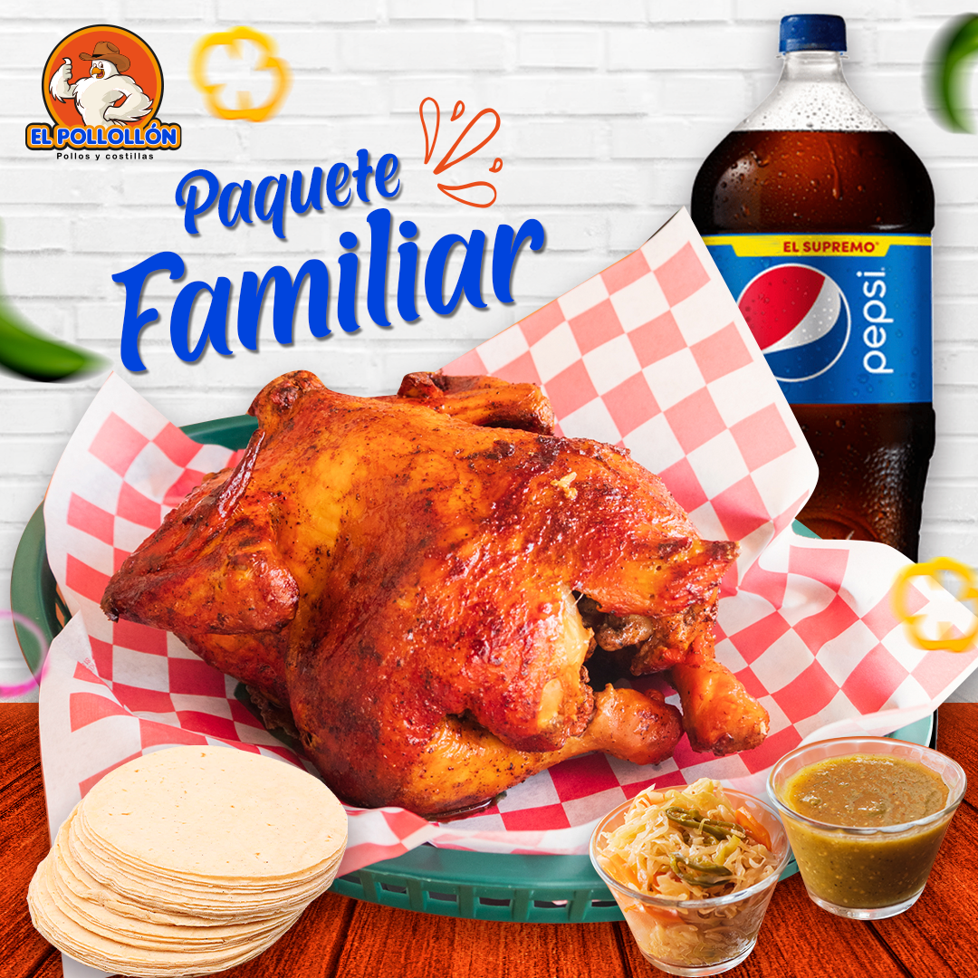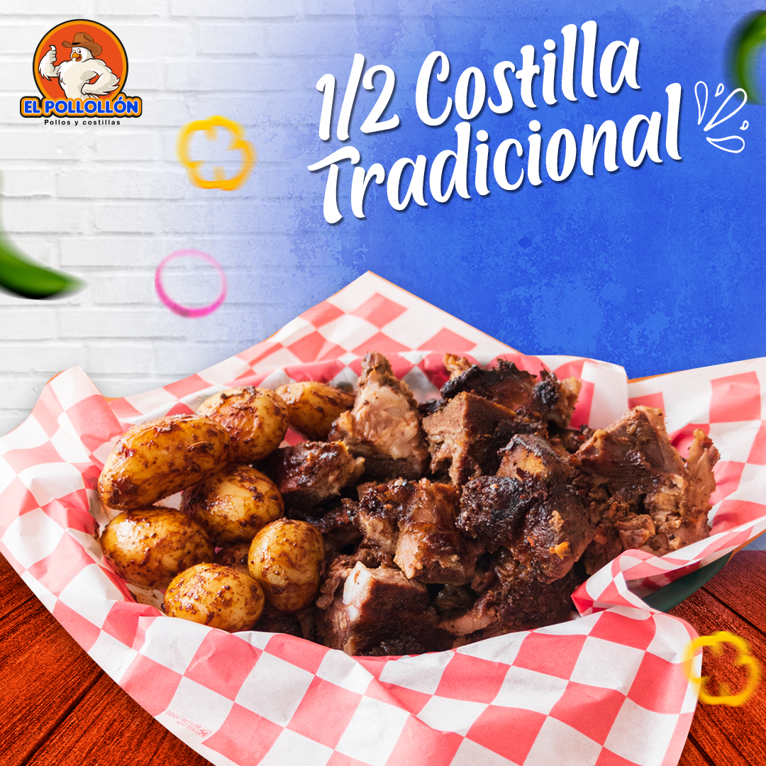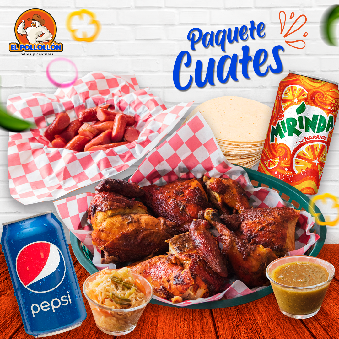 1 Pollollón*1 + 1/2 Kg de Costilla*1 + CIFRUT 3LT*1 + Velo de Novia/Ensalada Rusa.*1 + Ensalada de Col.*1 + Salsa Roja Extra*2 + Papas cambray*1 + Frijoles*2