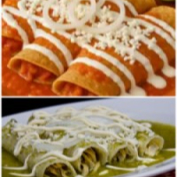 Tortilla de maíz suave, bañada en salsa de jitomate ROJA O VERDE, con cebolla, queso fresco, crema. ¡El auténtico sabor casero que tanto te gusta