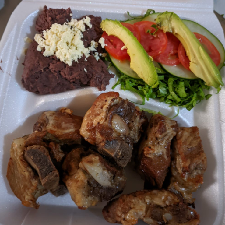 Jugosa costilla de cerdo frita hasta quedar dorada y crujiente por fuera, pero tierna por dentro. se sirve acompañada de una fresca ensalada de la casa, que complementa perfectamente el sabor y textura del platillo. ideal para una comida reconfortante y sabrosa.