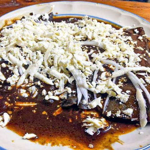 Tortilla con Mole Tradicional, Disfruta de 4 enchiladas rellenas pollo o res, bañadas en un mole riquísimo.