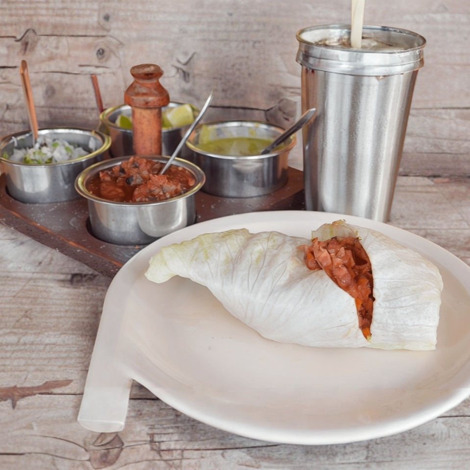 Para 4 a 6 personas, acompañada de tacos machos, quesadillas, tacos puercos, tacos de marlín, tacos al gobernador, vampiros, carne asada, guacamole y una cebolla asada.