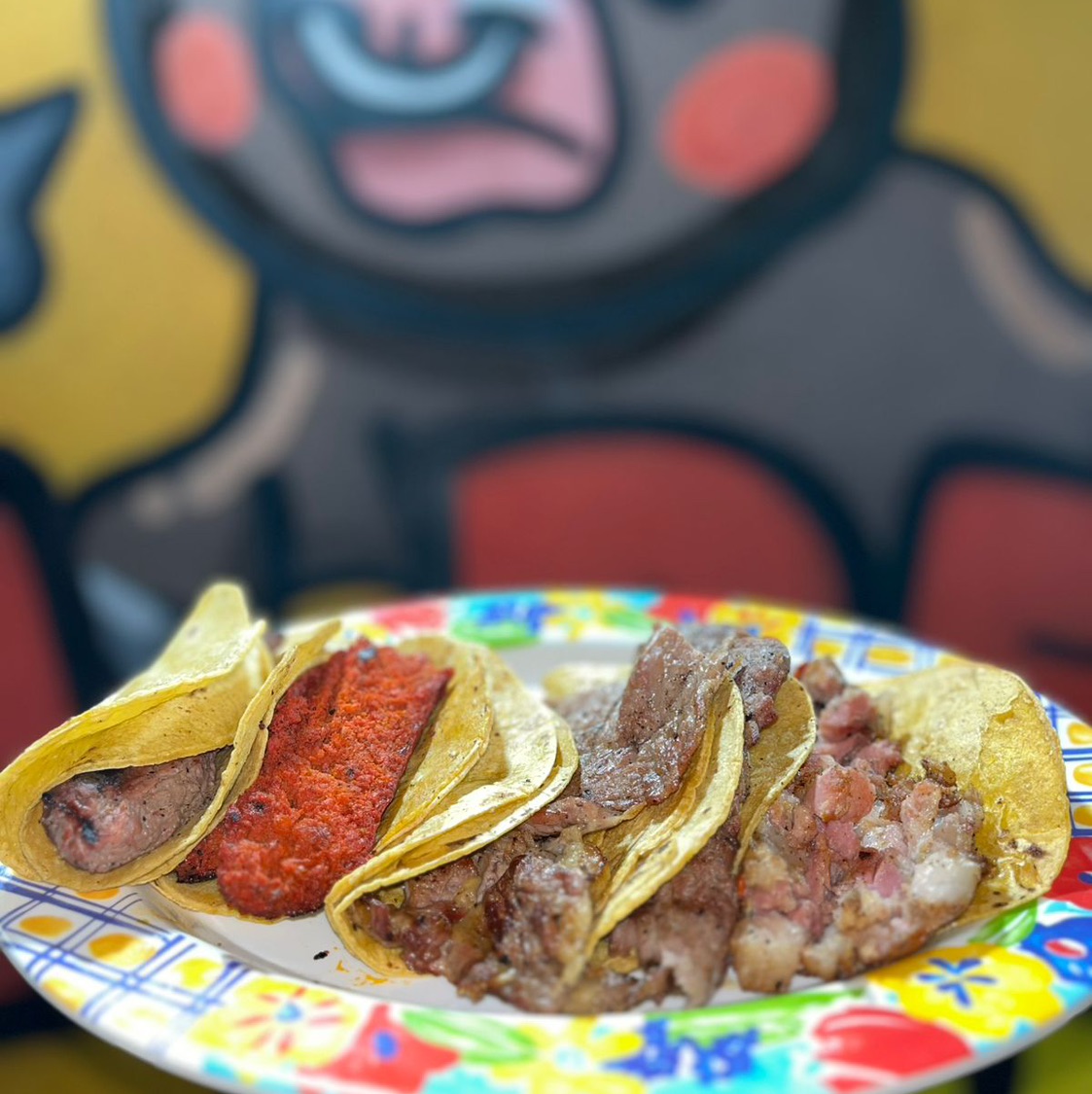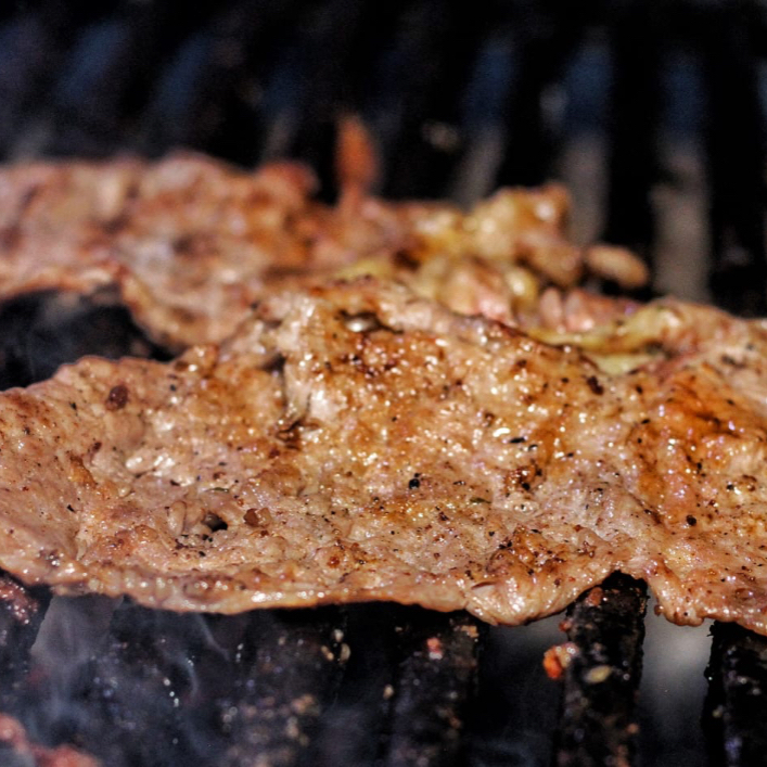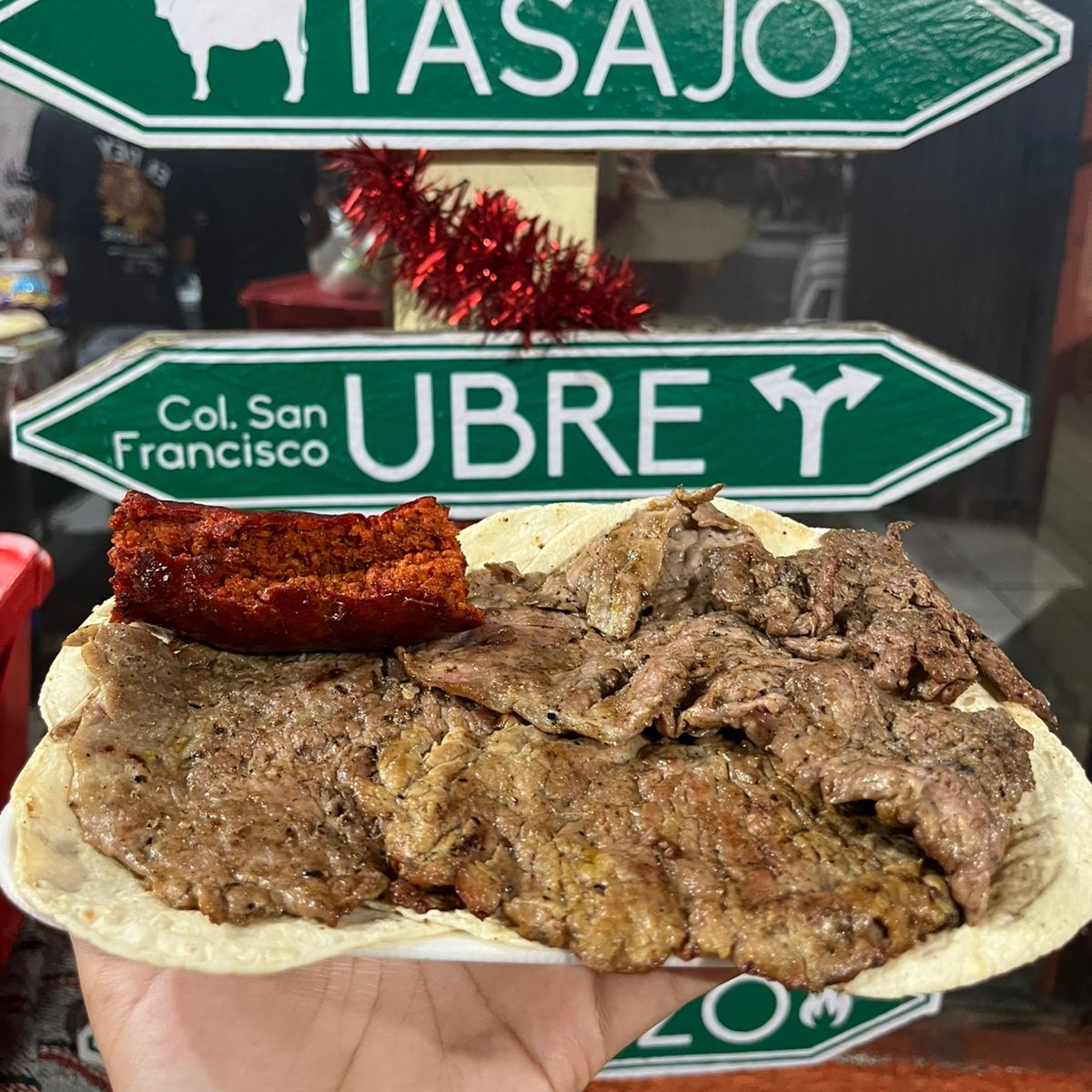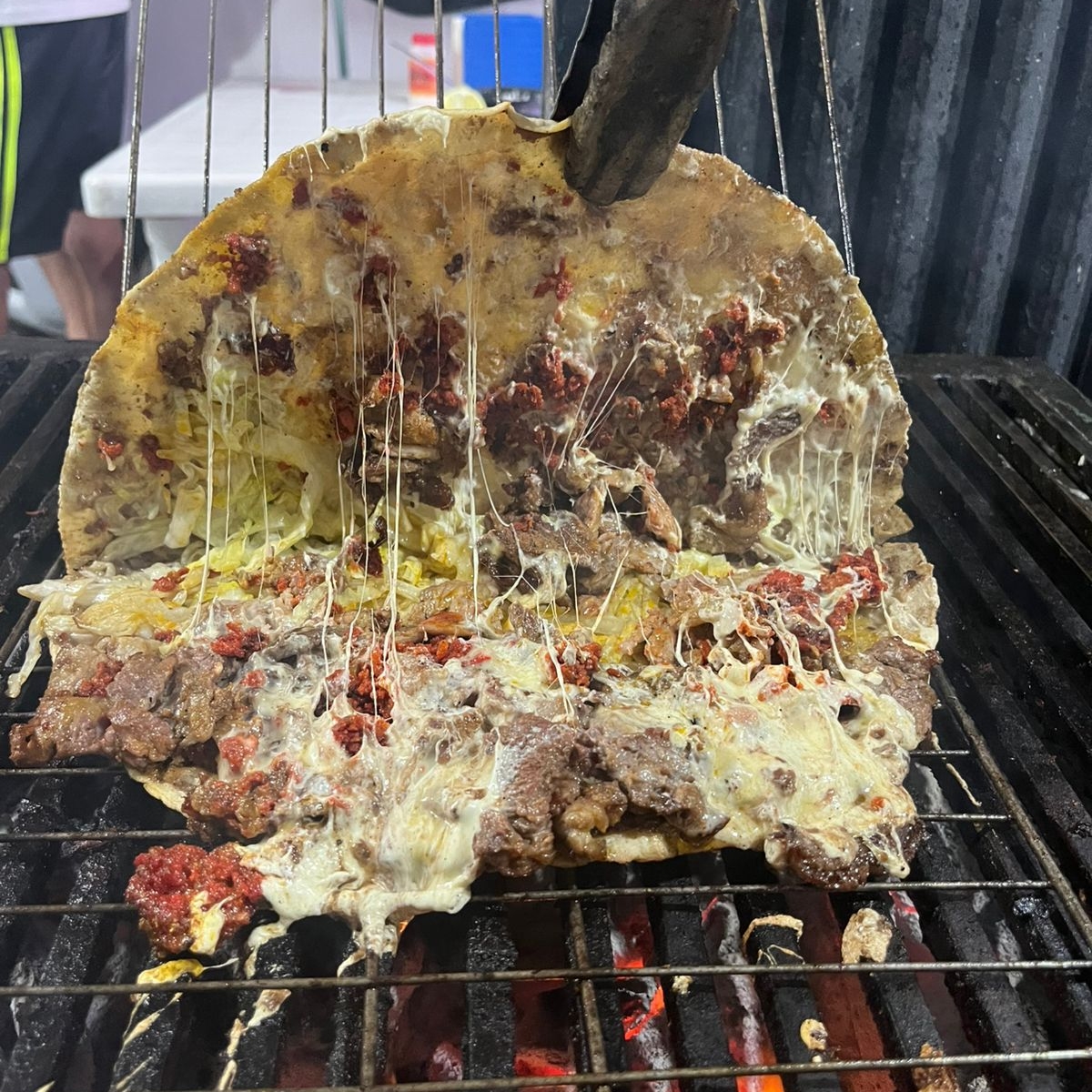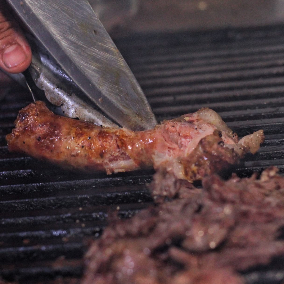Orden completa de carne surtida, asada, ubre, chorizo, longaniza y tripa.