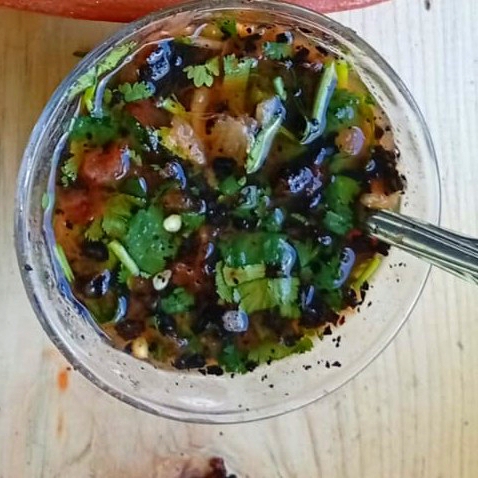 salsa de mango , cebollitas asada
