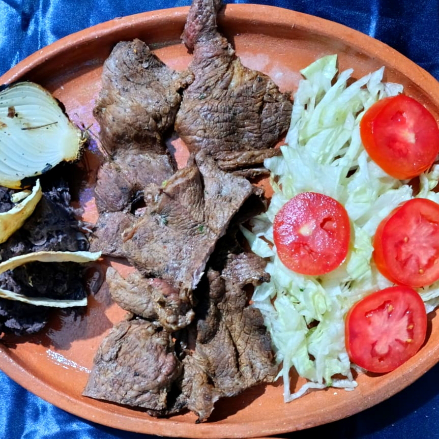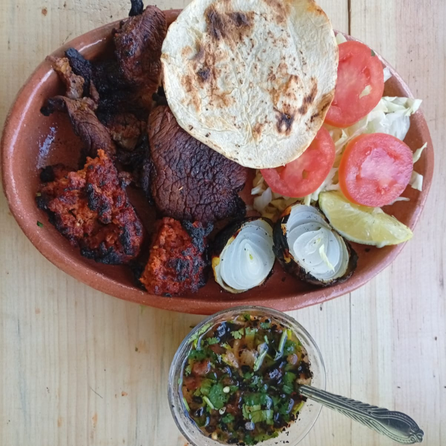 carne asada ,chorizo , longaniza incluye salsa tatemada y cebollitas