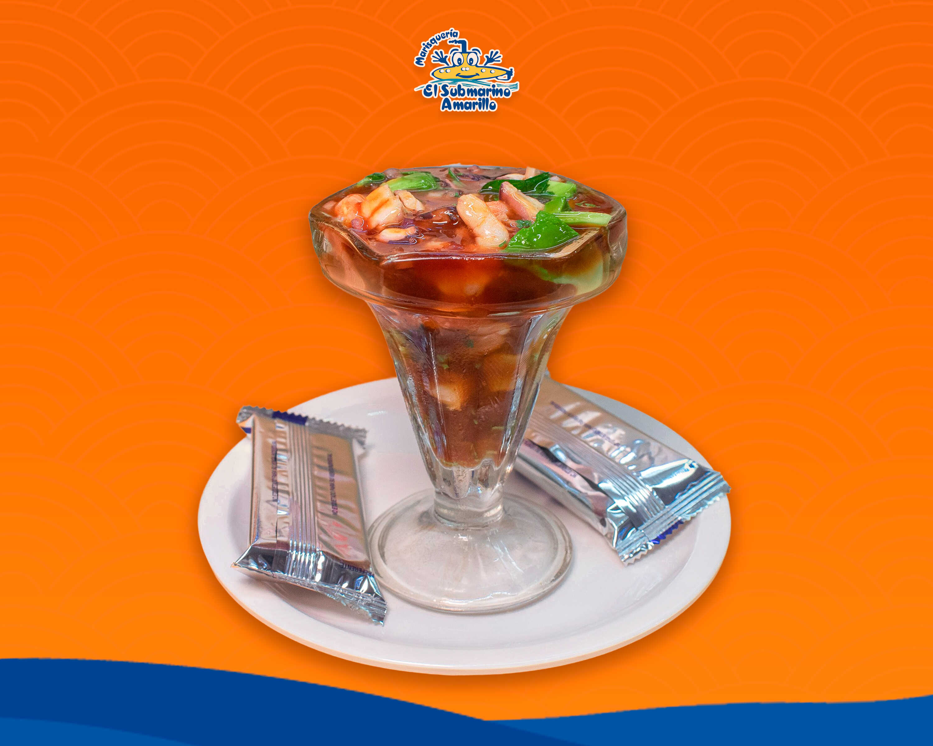 Cóctel de mariscos a su elección con cátsup de la casa.