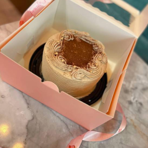 Recomendado para 8-10 personas. Una insignia en la alta repostería nuestro pastel de carajillo, humectado con tres leches y licor 43 con doble relleno de manjar de café, ganache de chocolate y adornado con crispearls de chocolate. Sin duda una explosión de sabor en su paladar.