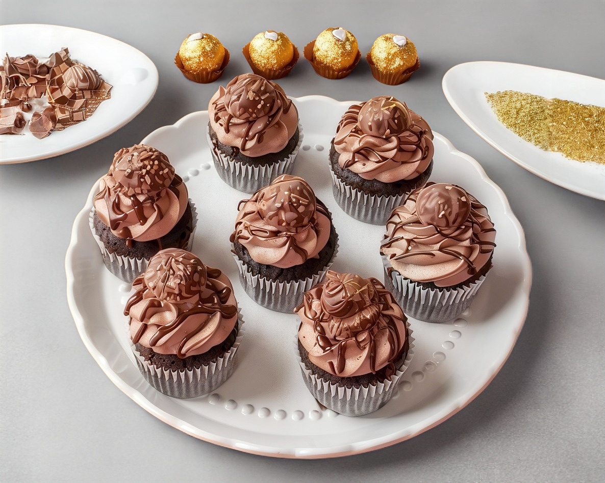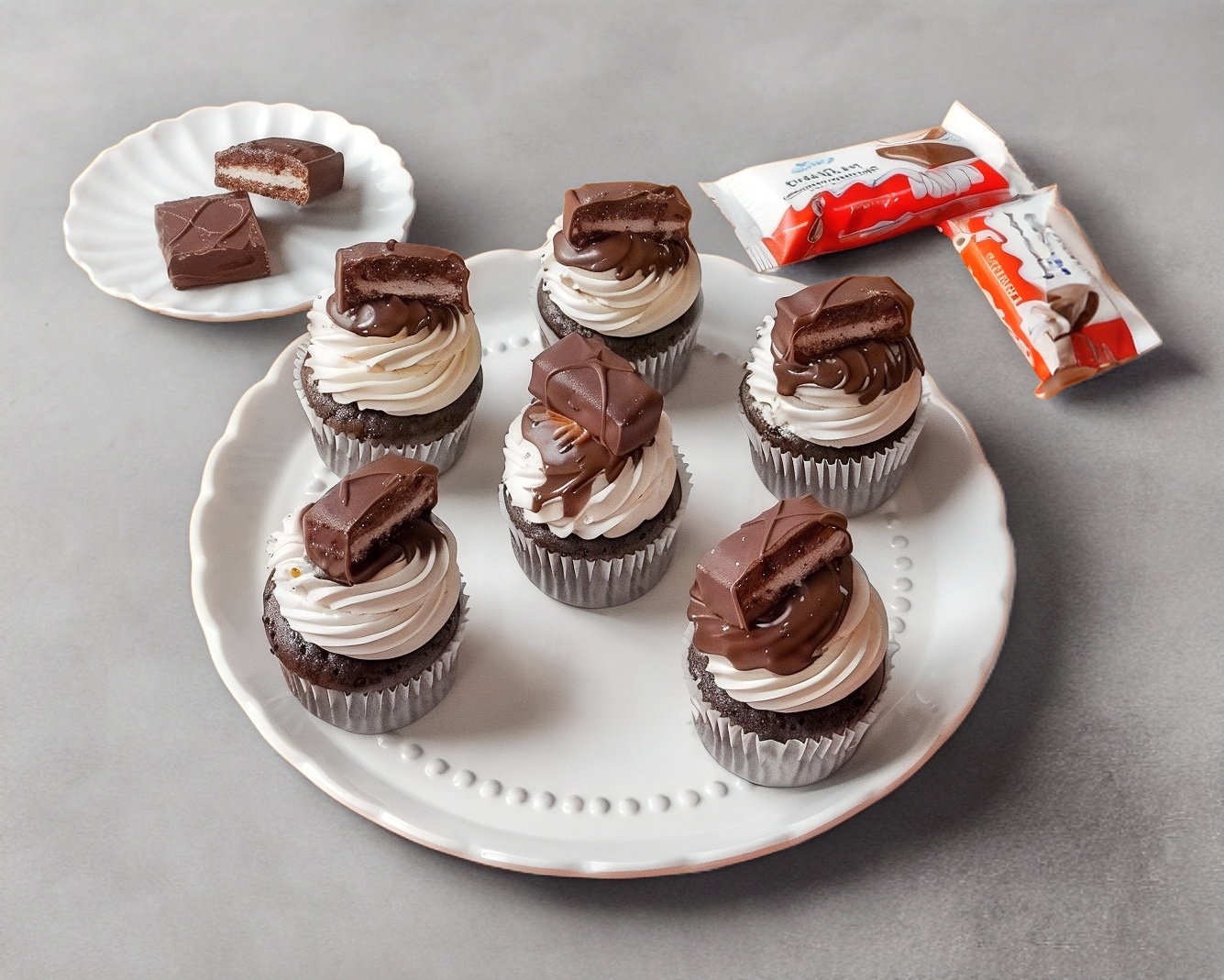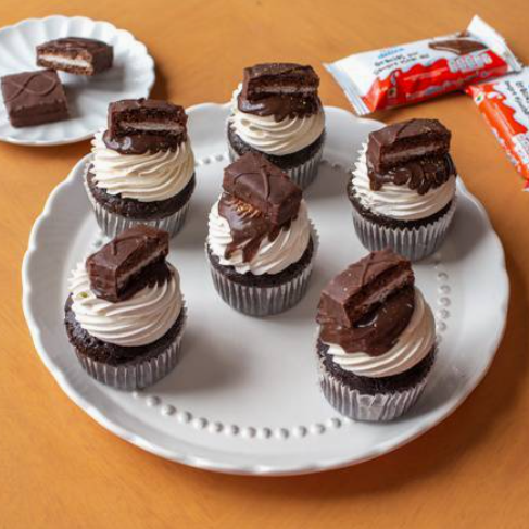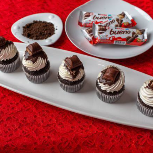 Cupcake cremoso de chocolate relleno de chocolate especial y coronado con Kínder Bueno.