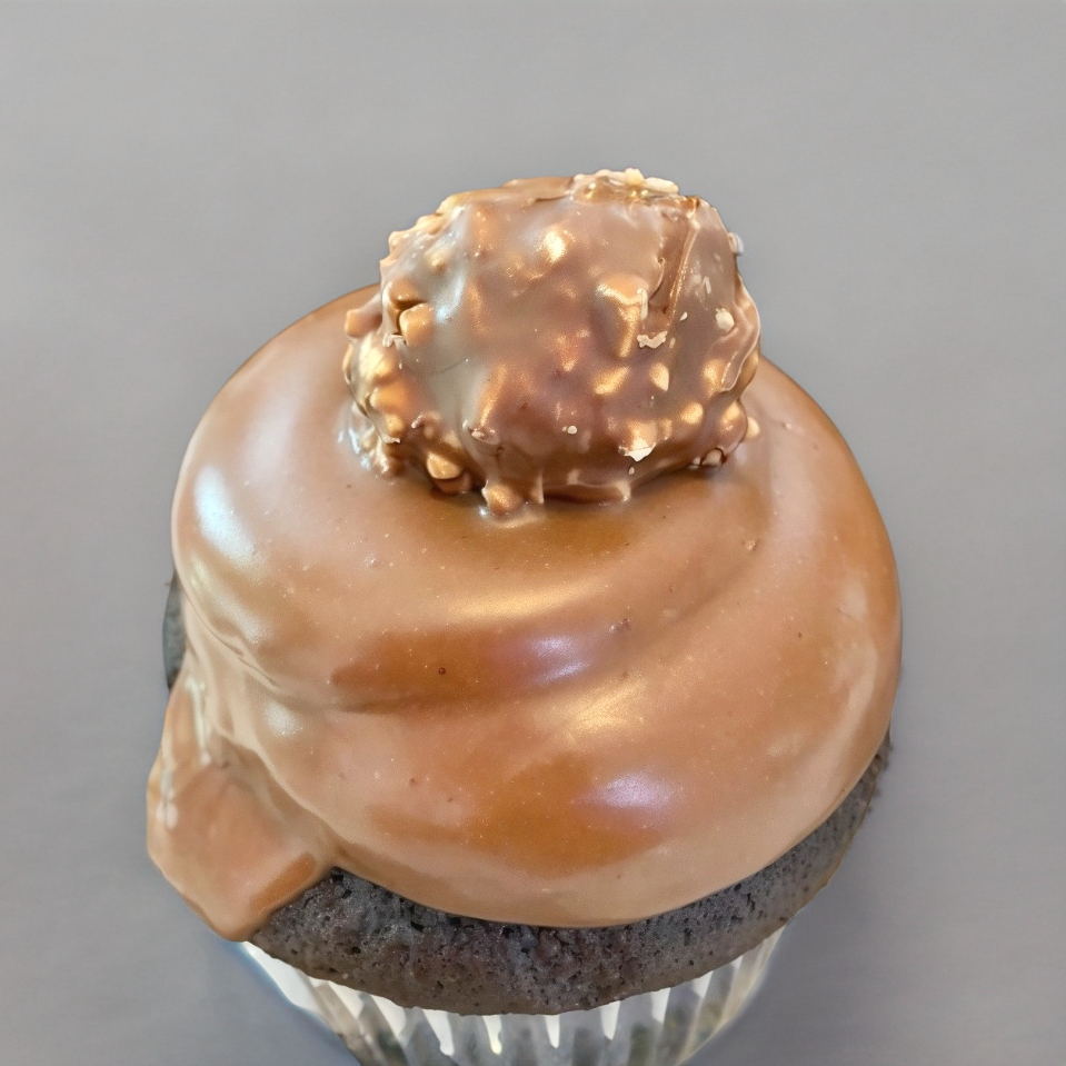 ¡De los más pedidos! Cupcake cremoso de chocolate relleno de chocolate especial y topping de crema de queso.