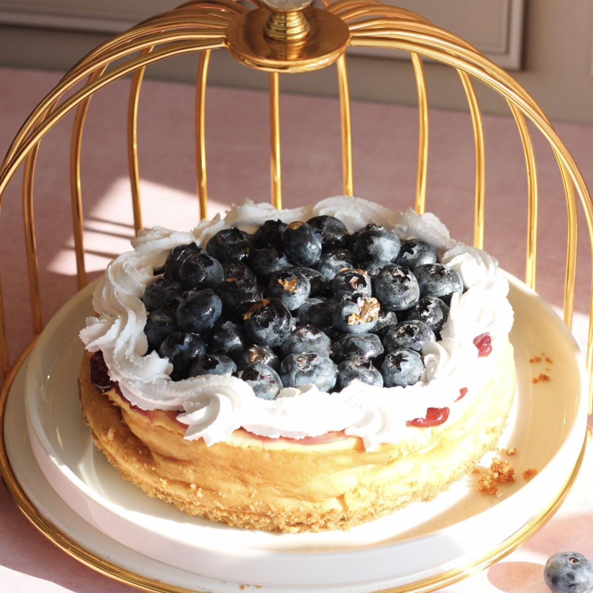 Perfecto para compartir entre 4-5 personas. Suave, cremoso y con el balance ideal entre dulzura y acidez, coronado con una generosa capa de blueberries frescas.