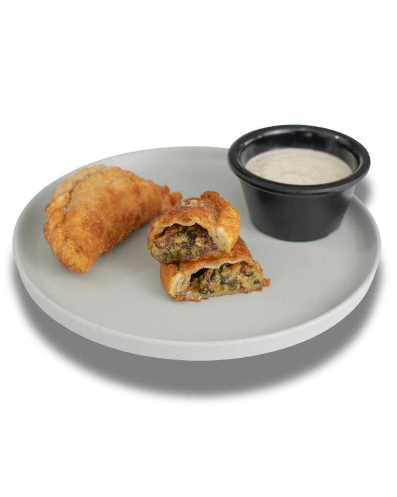 Empanada de Espinacas, Queso Azul y Tocino "Furia". Ideal para aquellos que buscan un plato gourmet e intenso sabor.