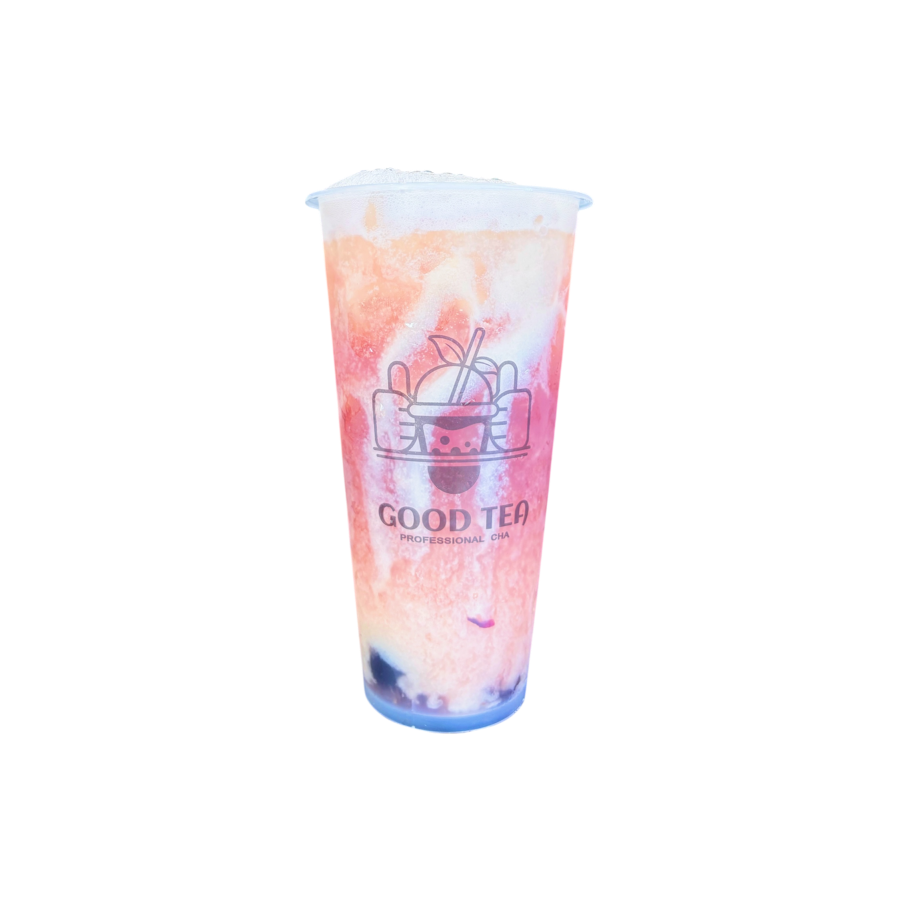 Malteada en base de te de jazmín sabor sandia. Contiene tapioca perla, puede cambiar por otro topping.