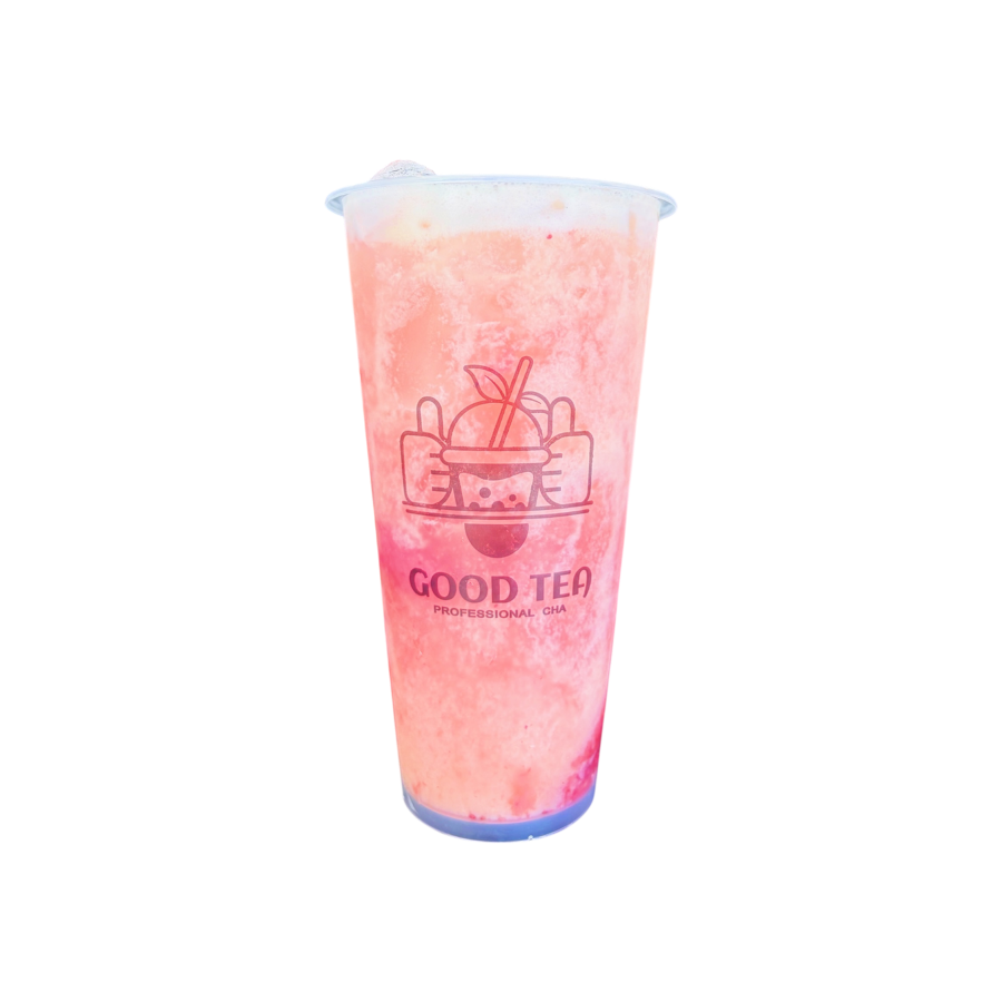 Malteada en base de te de jazmín sabor fresa. Contiene tapioca perla, puede cambiar por otro topping.
