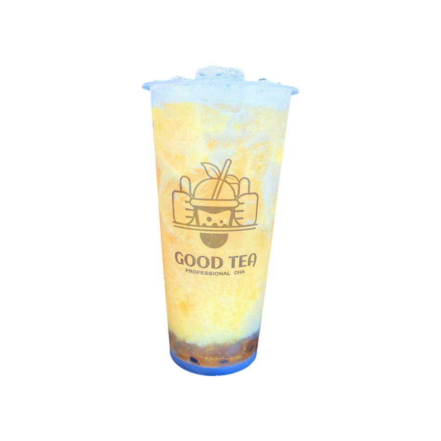 Malteada en base de te de jazmín sabor mango. Contiene tapioca perla, puede cambiar por otro topping.