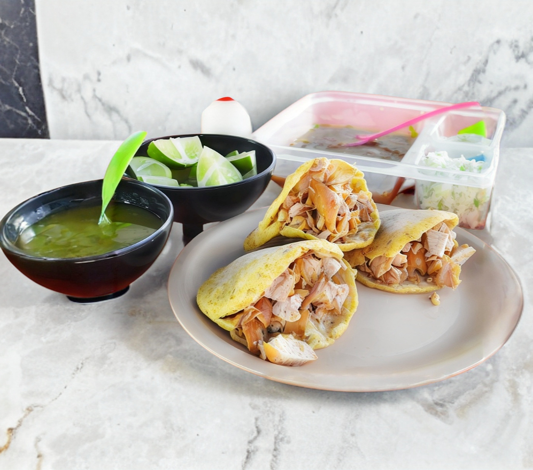 Incluye, salsa roja, verde, limones, repollo y cebolla.