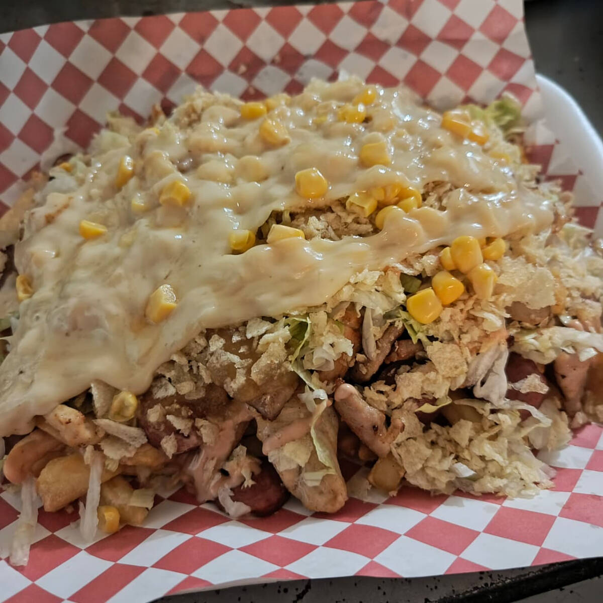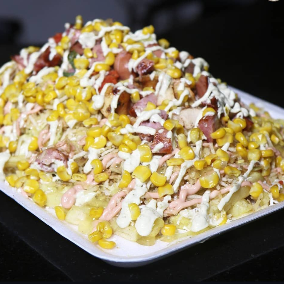 Crujientes papas fritas con salchicha dorada, acompañadas de queso y una mezcla irresistible de salsas al estilo colombiano. Un clásico callejero lleno de sabor.