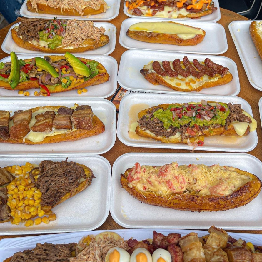 Delicioso plátano maduro frito y endulzado con azúcar, untado con cremosa mantequilla y rellenito de carnes frías y queso derretido