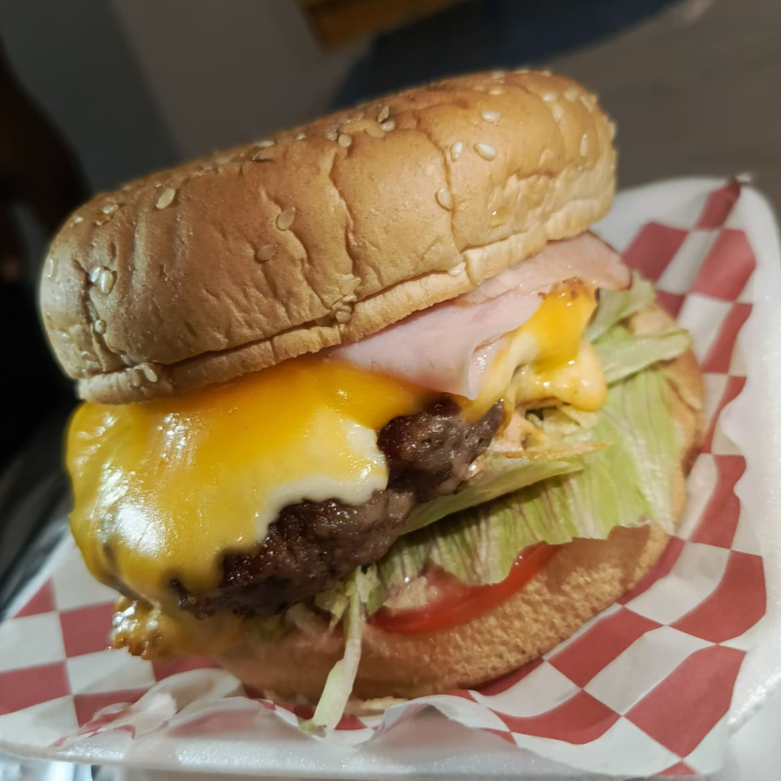 pan doradito y ligeramente crujiente por fuera, pero suave por dentro, impregnado con el jugo de la carne, con una capa de queso derretido. Los protagonistas del sabor colombiano: salsa de piña y cebolla caramelizada con bbq, tiras crujientes de tocineta, huevo frito y frituras trituradas