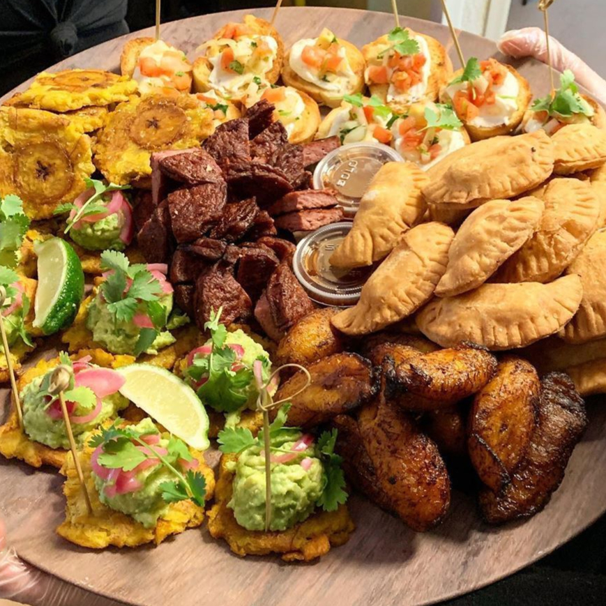 Platillo que integra lo más rico de Colombia, crujientes mini empanadas, costillas de cerdo bbq, patacones con guacamole, tajadas fritas y ají picosito, ideal para comenzar a conocer la gastronomía colombiana