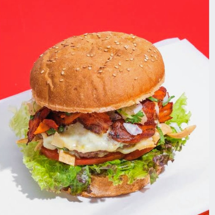 doble carne de res ,doble jamón , doble queso derretido , lechuga , tomate, tocino