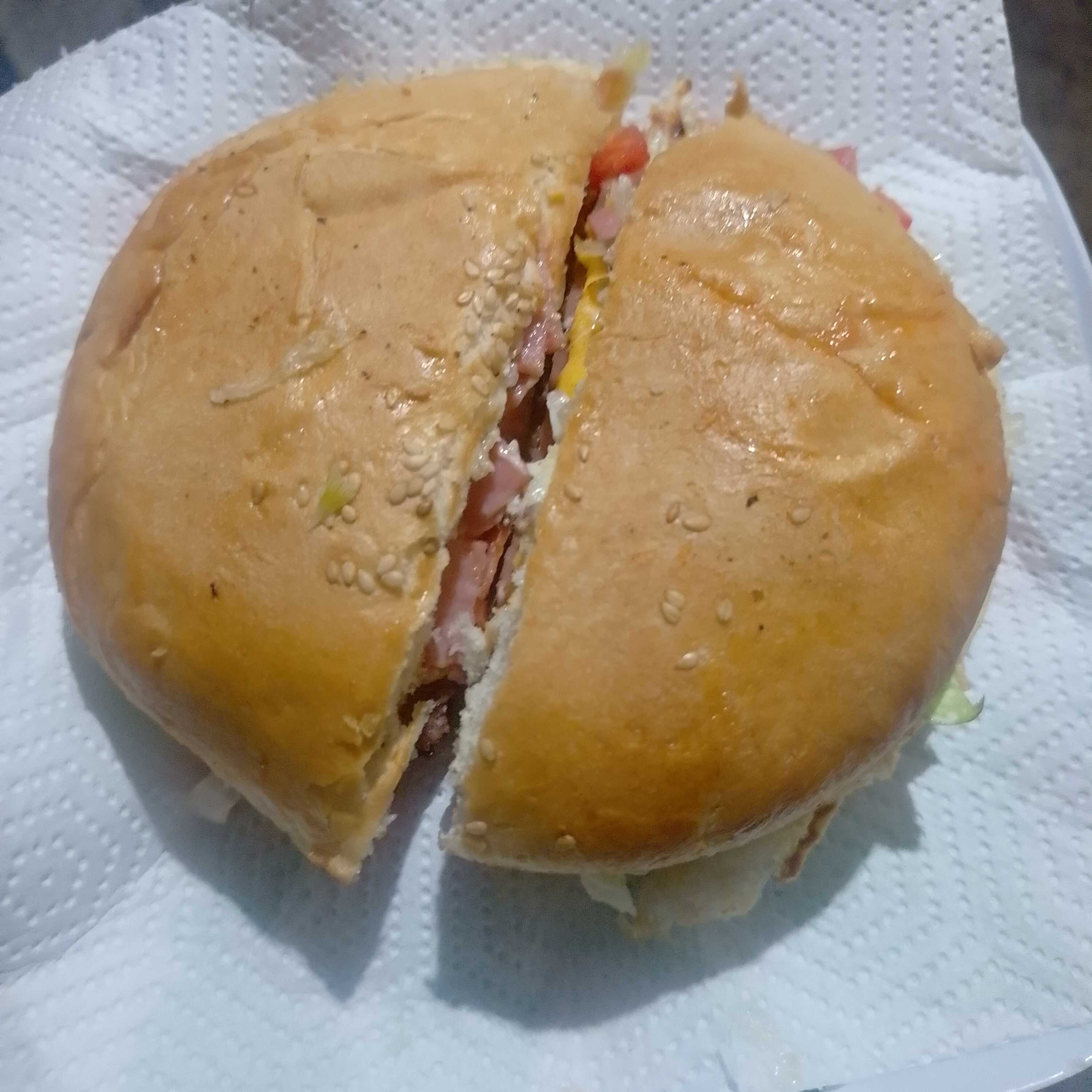 Pan lechuga tomate catsup mostaza tocino jamón queso amarillo carne mayonesa