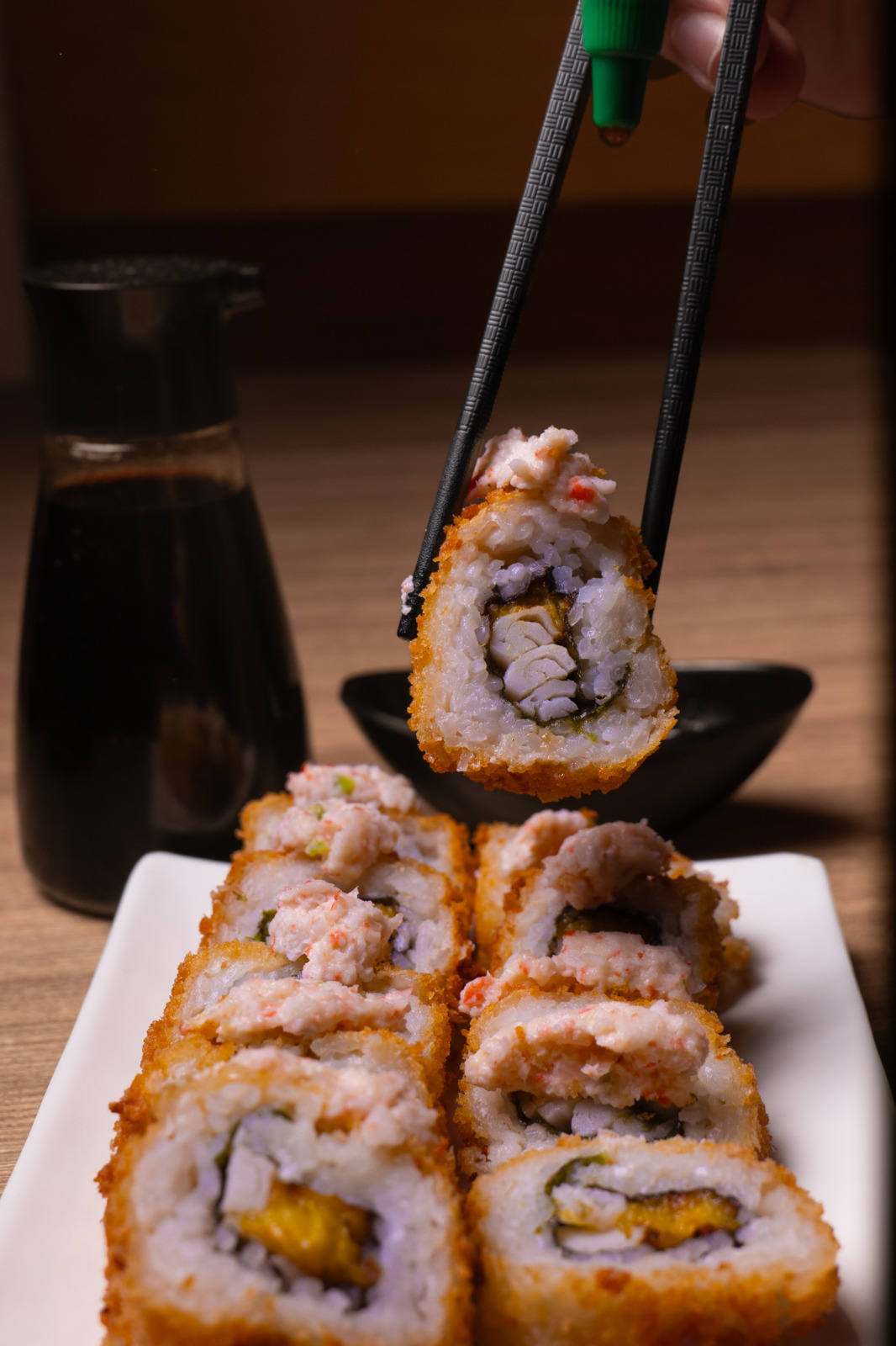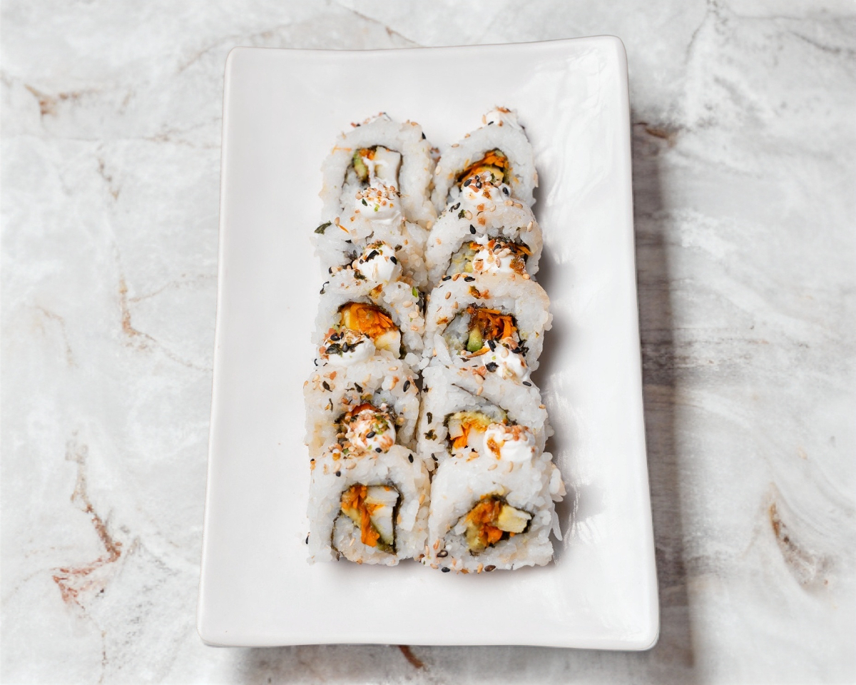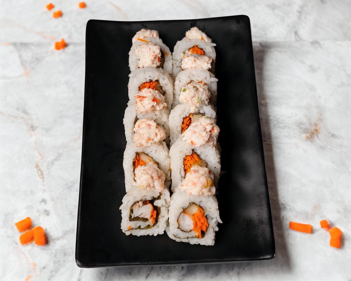 Pd: zanahoria, surimi, aguacate. Pf: queso crema y furikake.