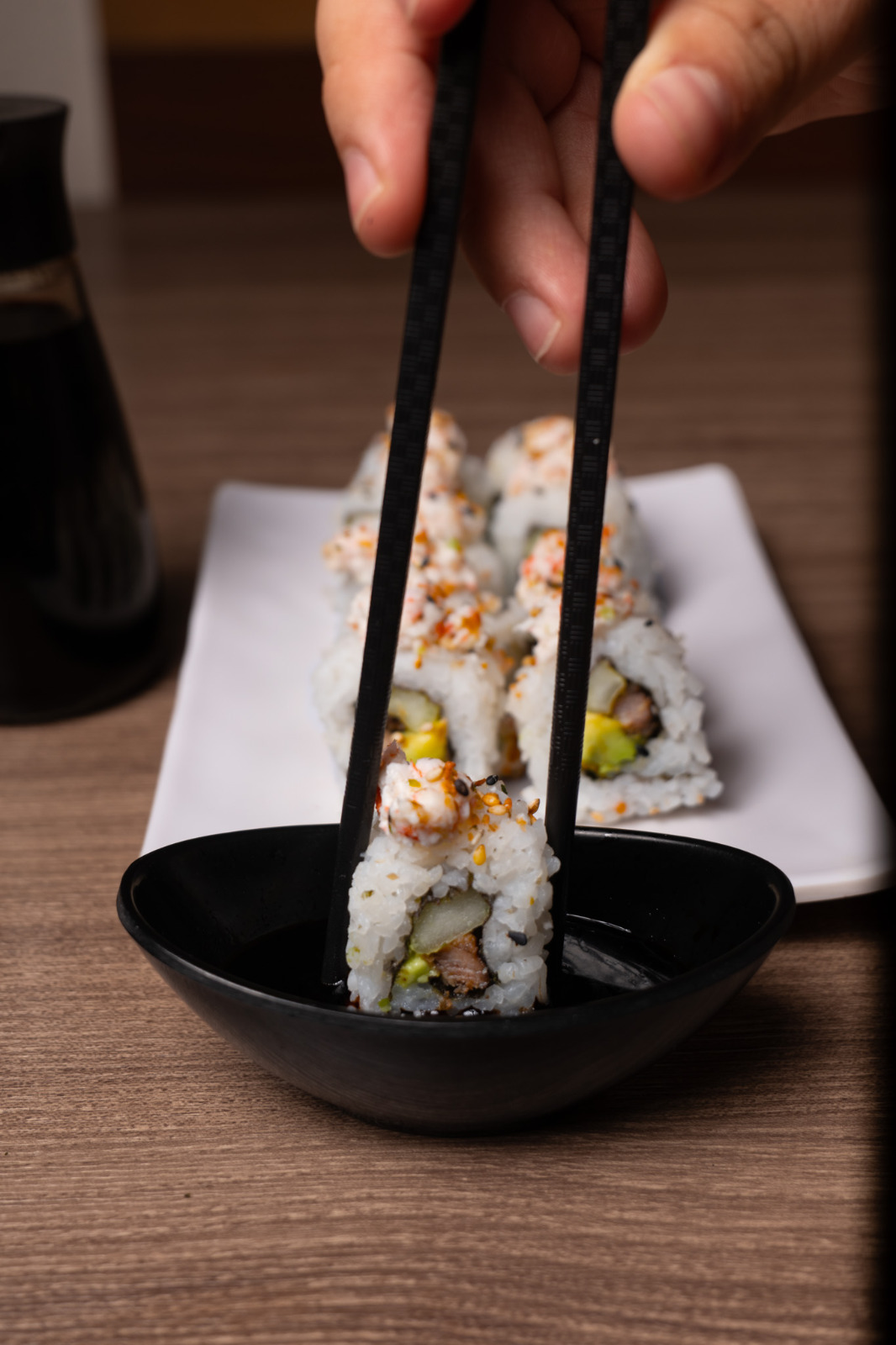 Pd: res, pepino, aguacate. Pf: Tampico y furikake.