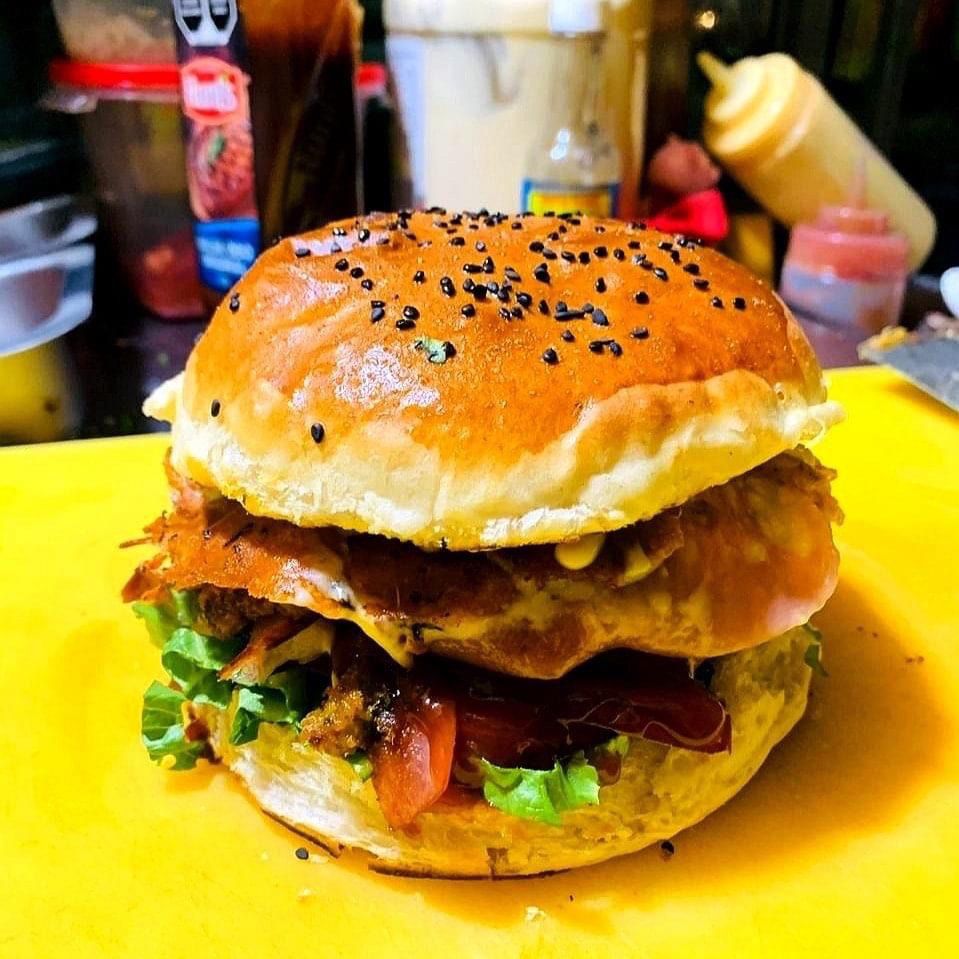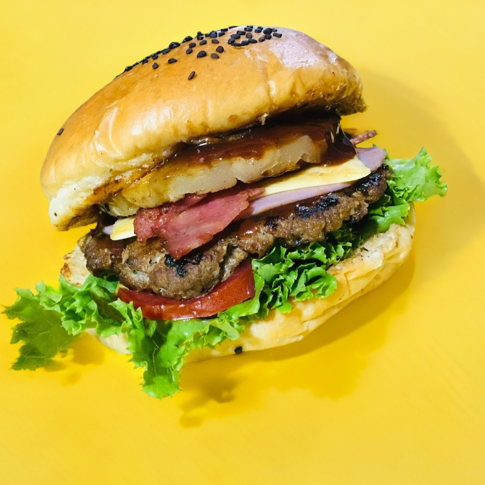 Tomate, cebolla morada,lechuga,catsup, mostaza y tocineta