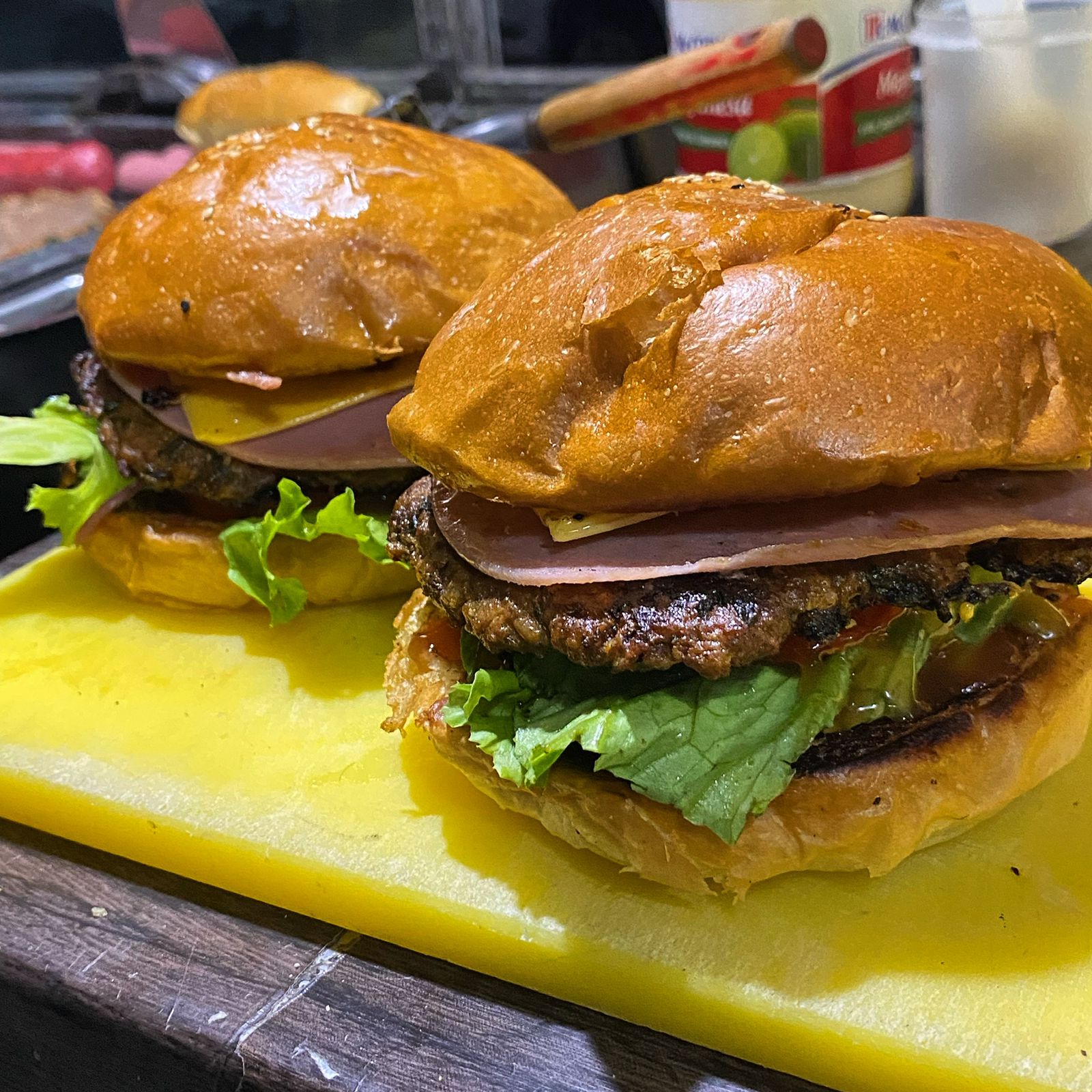 Tomate, cebolla, lechuga, mostaza, catsup, jamón, rebanada de queso amarillo y mostaza