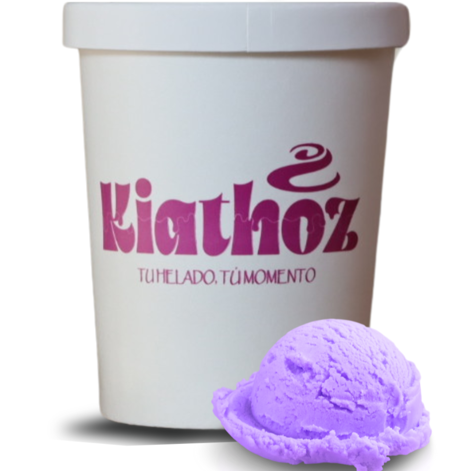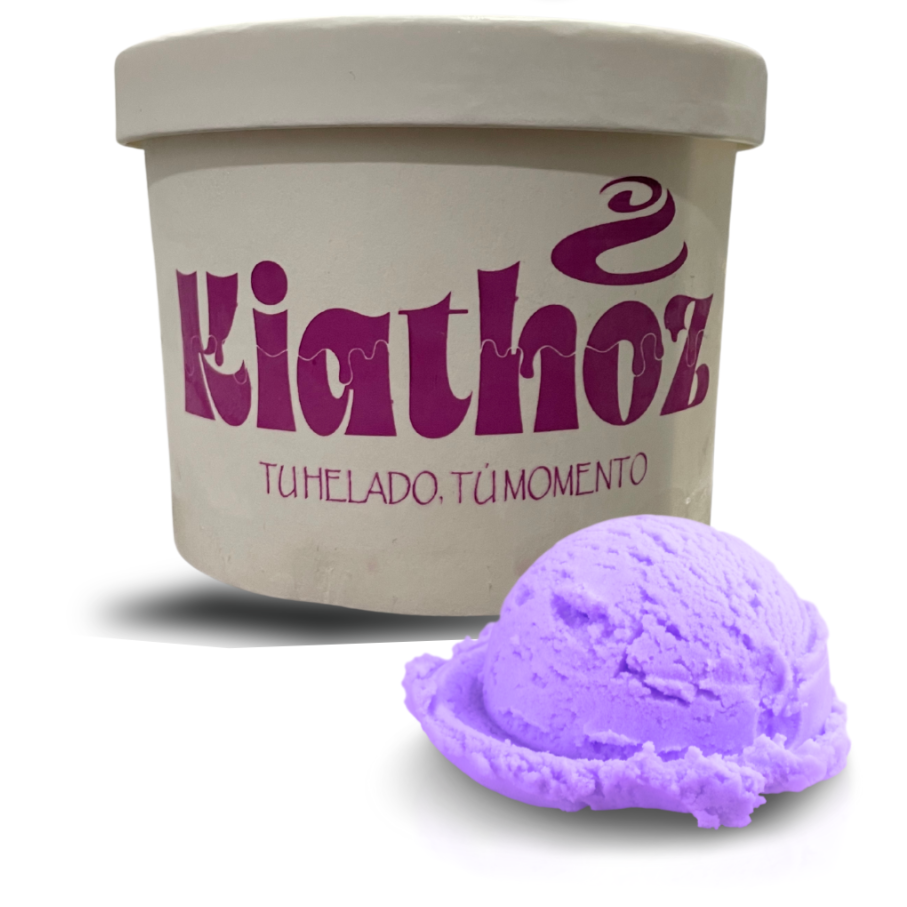 Helado de yogurt cremoso con sabor a taro, de color morado y con un toque dulce y suave, perfecto para quienes buscan algo diferente y delicioso.