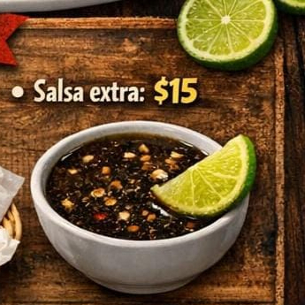 Camarón fresco en una intensa salsa negra con chiles tostados, limón y especias, acompañado de pepino, cebolla morada y aguacate.