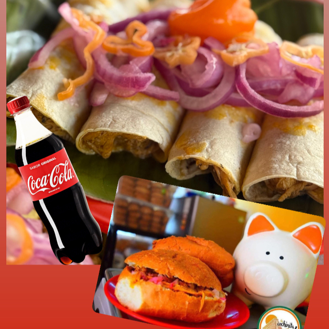 Coca Cola 600 Ml (Desechable)*1 + Taco de Cochinita Pibil*4 + Torta de Cochinita Pibil*2
