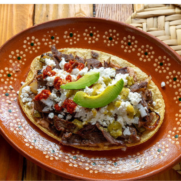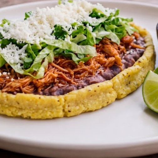 Delicioso sope con frijolitos, lechuga y guiso a elegir.