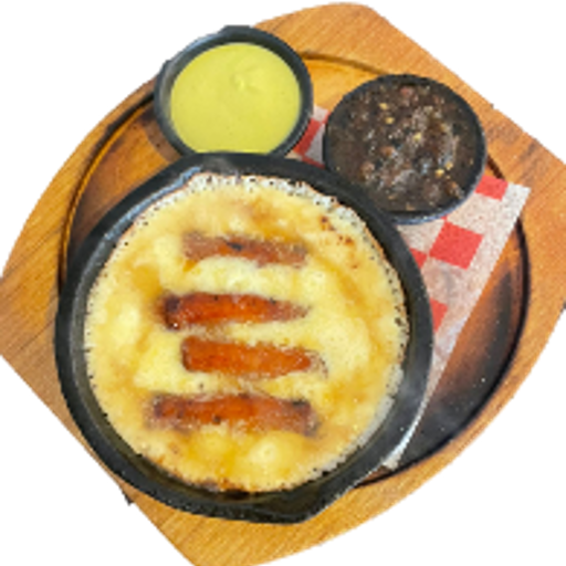 Chistorra 120gr gratinada con queso gouda y salsa alfredo.