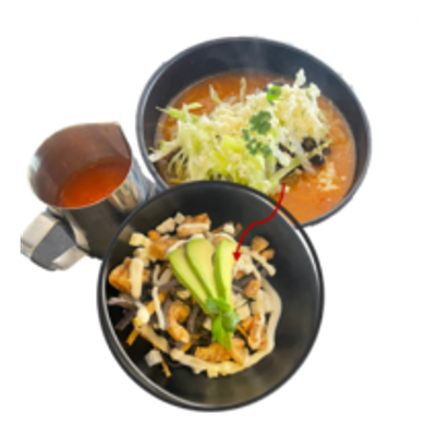 A escoger sopa de tortilla, fideos o frijol.