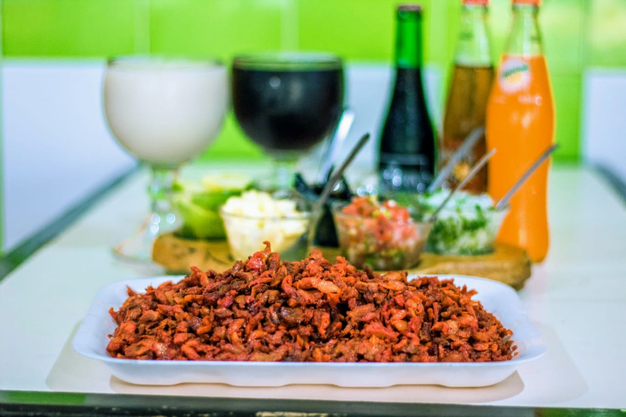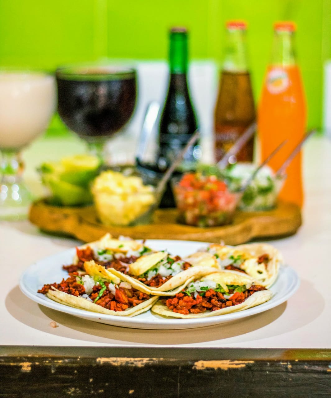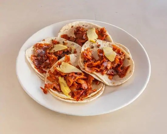 Taco al pastor estilo tradicional 5 uds más horchata 1 ud.