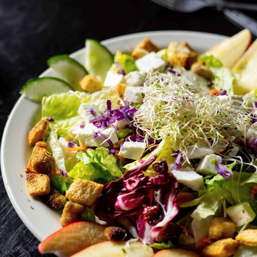 Mix de lechugas, semillas, girasol, cacahuate, nuez, arándanos, pepino y...