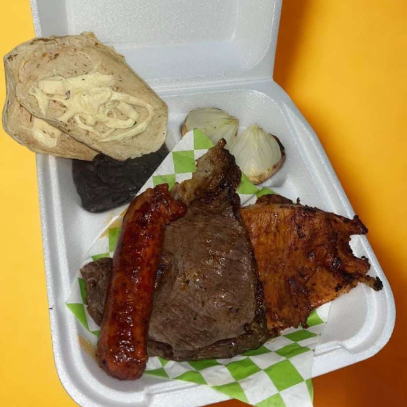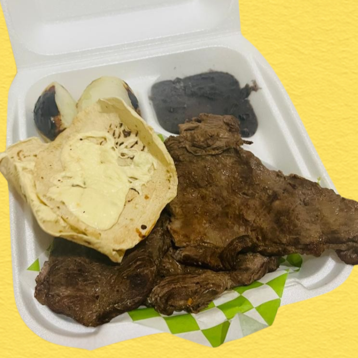 Acompañado de frijoles, cebolla asada, salsa y tortillas (orden individual)