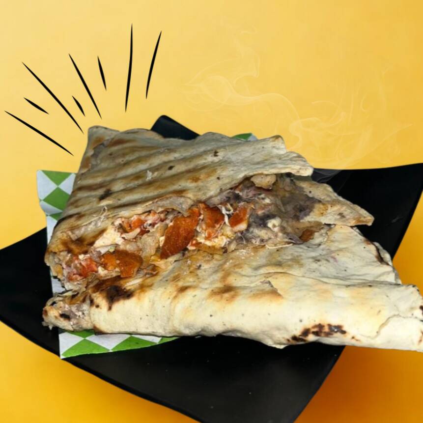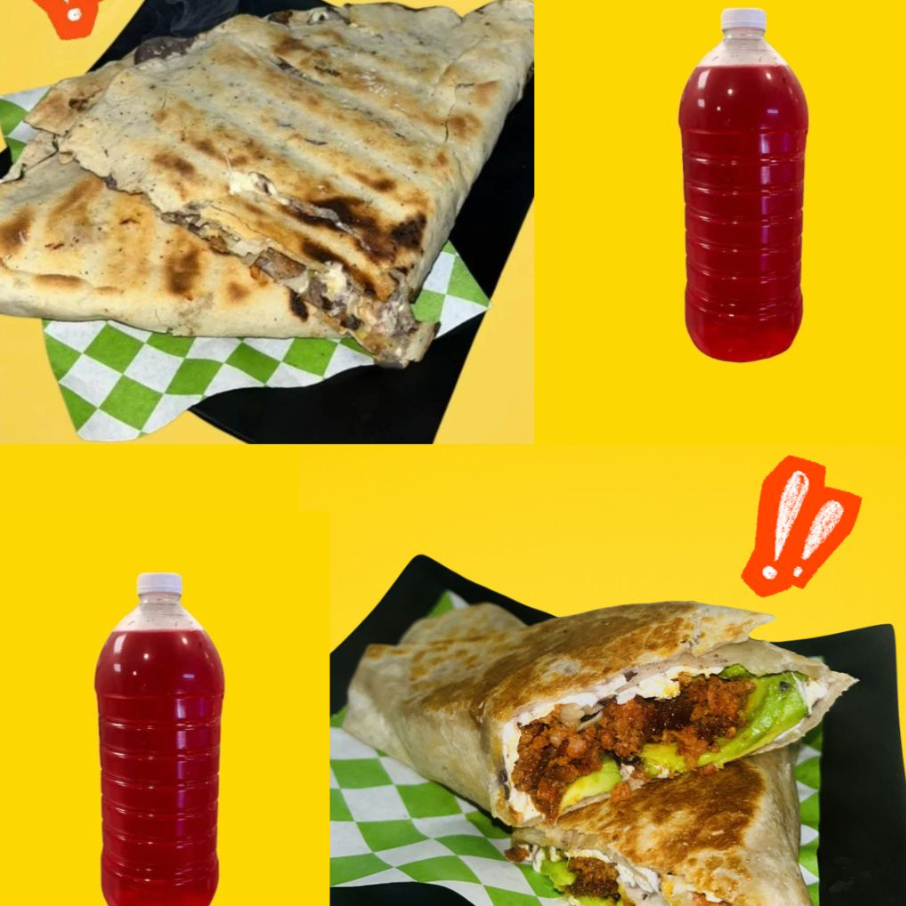 Tlayuda de Al Pastor Mediana*1 + Burrito de Chorizo*1 + Agua de Jamaica*2 + Orden de Cebolla*1