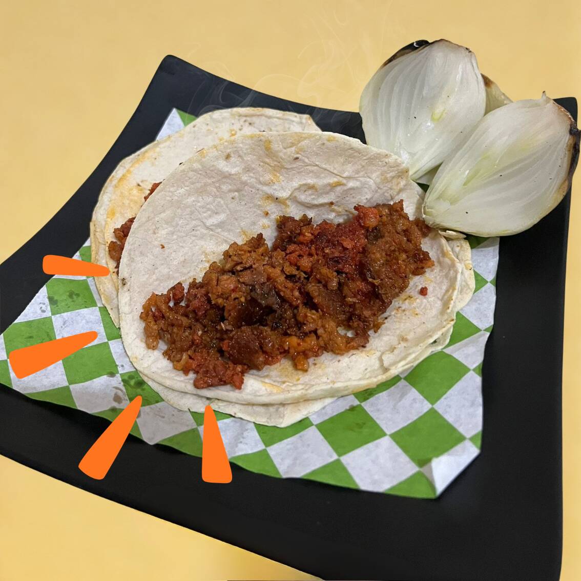Acompañado de frijoles, cebolla asada y tortillas (orden individual)