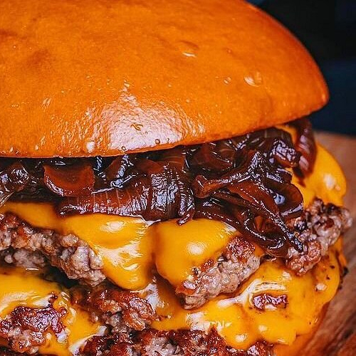 Pan brioche con doble carne 100 % de res cubierta de doble queso amarillo y queso blanco bañada con nuestro caramelo de tocino y aderezada con salsa de la casa.