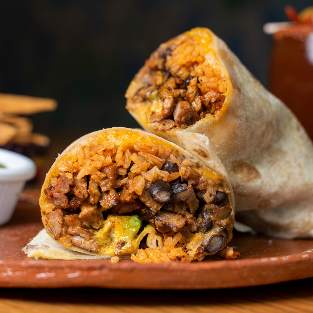 Tortilla de harina enrollada y carne a elegir: churrasco, asada, costilla, chorizo, longaniza y mixto.