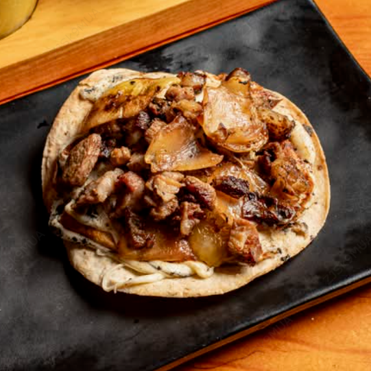 Quesadilla con carne a elegir: churrasco, asada, costilla, chorizo, longaniza y campechano.