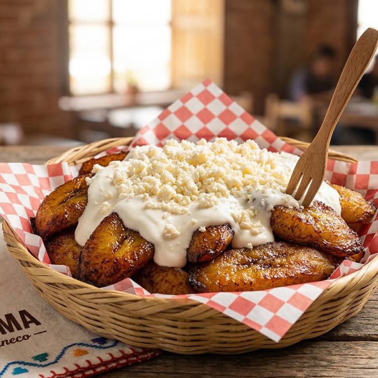 Los servimos como se debe en La Séptima: cubiertos con una capa de crema espesa artesanal y abundante queso chiapaneco desmoronado, creando el equilibrio ideal entre el dulzor natural del plátano y el toque saladito del queso de nuestra región.