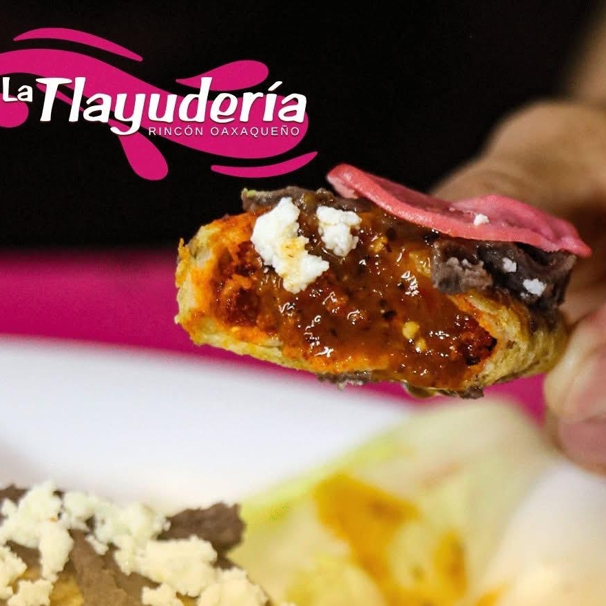 Tlayuda crujiente con frijol, quesillo y carne enchilada marinada en chile rojo, repollo y aguacate.