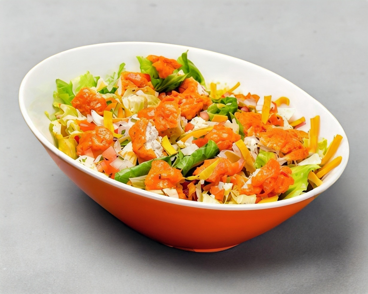 La ensalada favorita de Las Alitas, con pechuga de pollo (230 g) empanizada bañada en tu salsa favorita sobre lechugas mixtas, queso Monterrey Jack, pico de gallo y tiritas de tortilla doradas al momento.