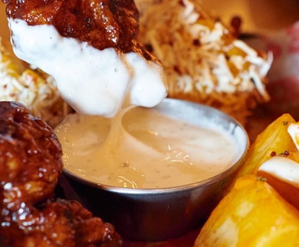 Nuestras ya emblemáticas y deliciosas alitas (630 g en crudo) bañadas en tu salsa favorita, acompañadas de verduras bien fresquecitas y aderezo Blue Cheese.