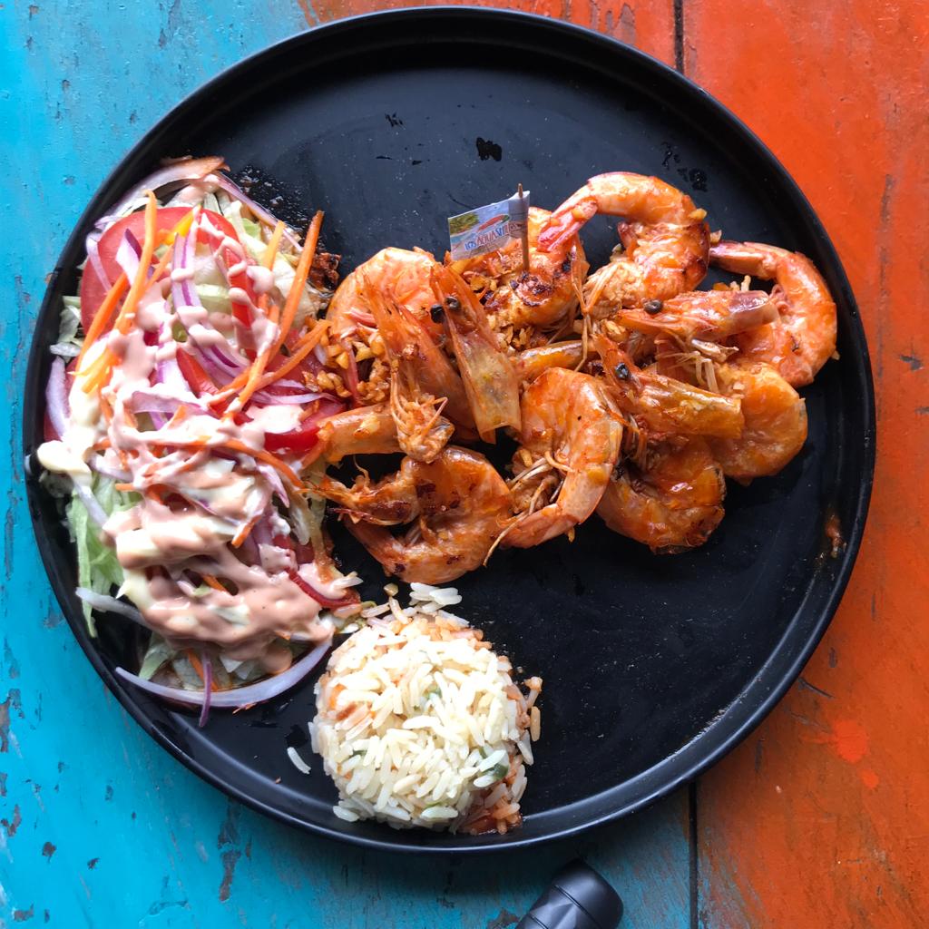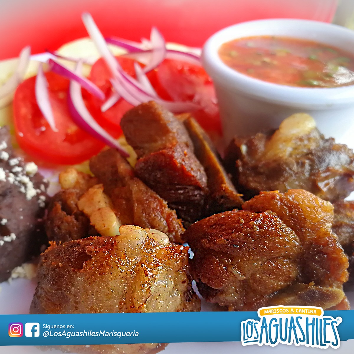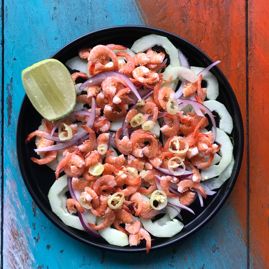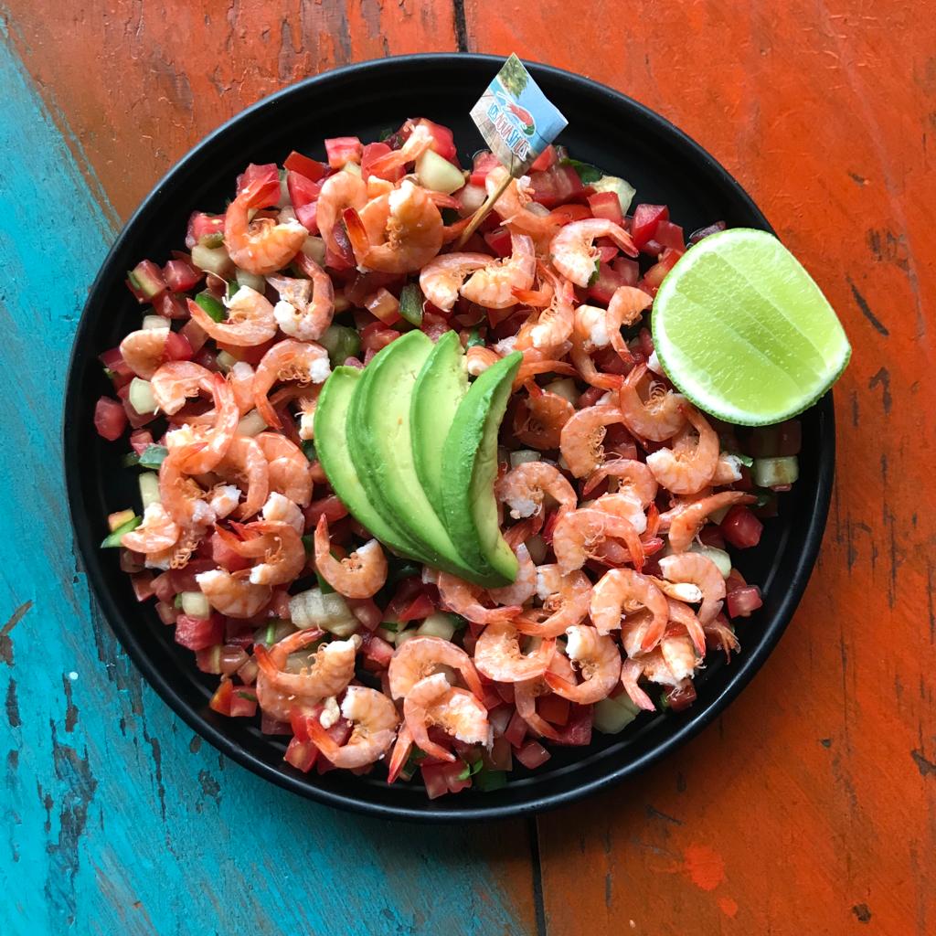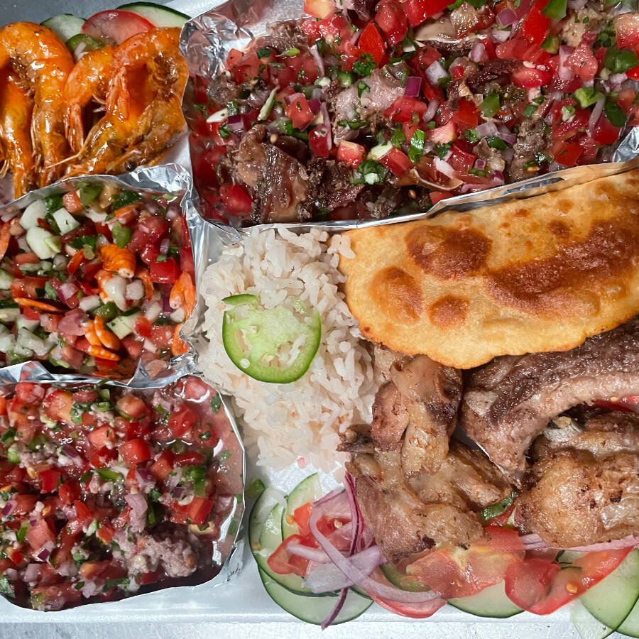 costilla, carraca, ensalada camaron seco, carne tartara, camarones al ajo, empanadas,