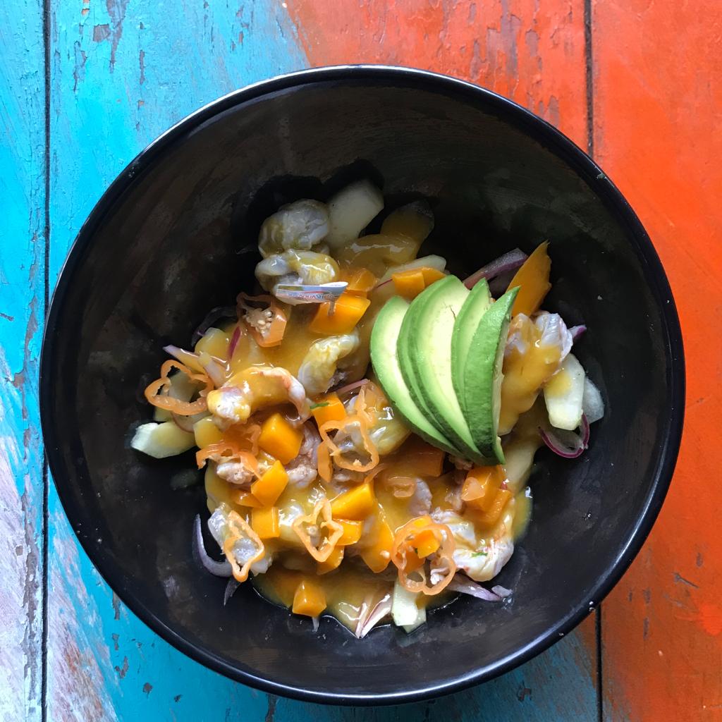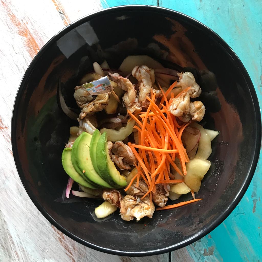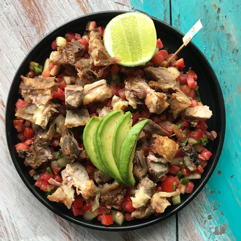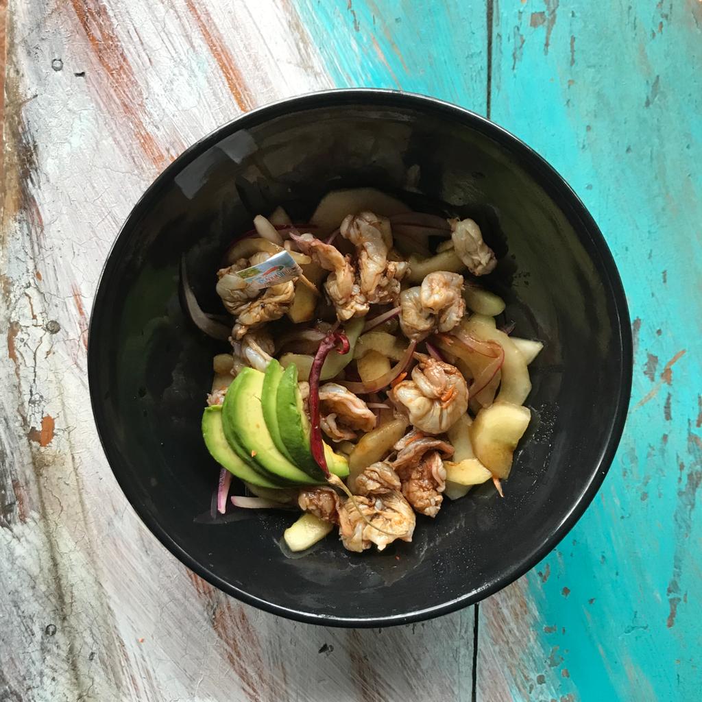 costilla, carraca, ensalada camaron seco, carne tartara, camarones al ajo, empanadas,